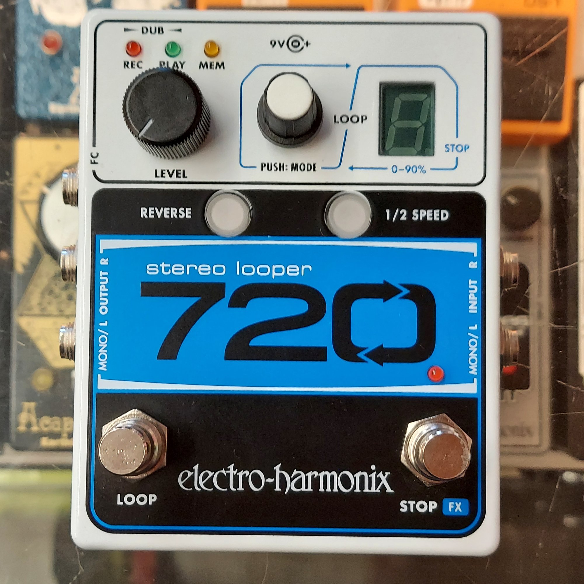 from the EHX website: "The EHX 720 Stereo Looper is a powerful looping tool with 12 minutes of stereo recording time, 10 loop memory banks, and creative performance functions. Its simple-to-use design makes it an easy and effective to use in both live and practice situations.