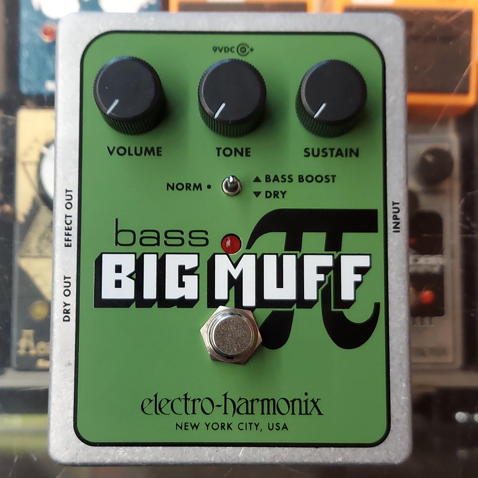 from the EHX website: "The EHX Bass Big Muff lets you rip and rumble with a full fuzz tone and no low-end loss. Inspired by the mythical bass response of the Black Russian Big Muffs of the 90’s, the distortion of the Bass Big Muff hits like a ton of bricks, sludgy mortor and all.