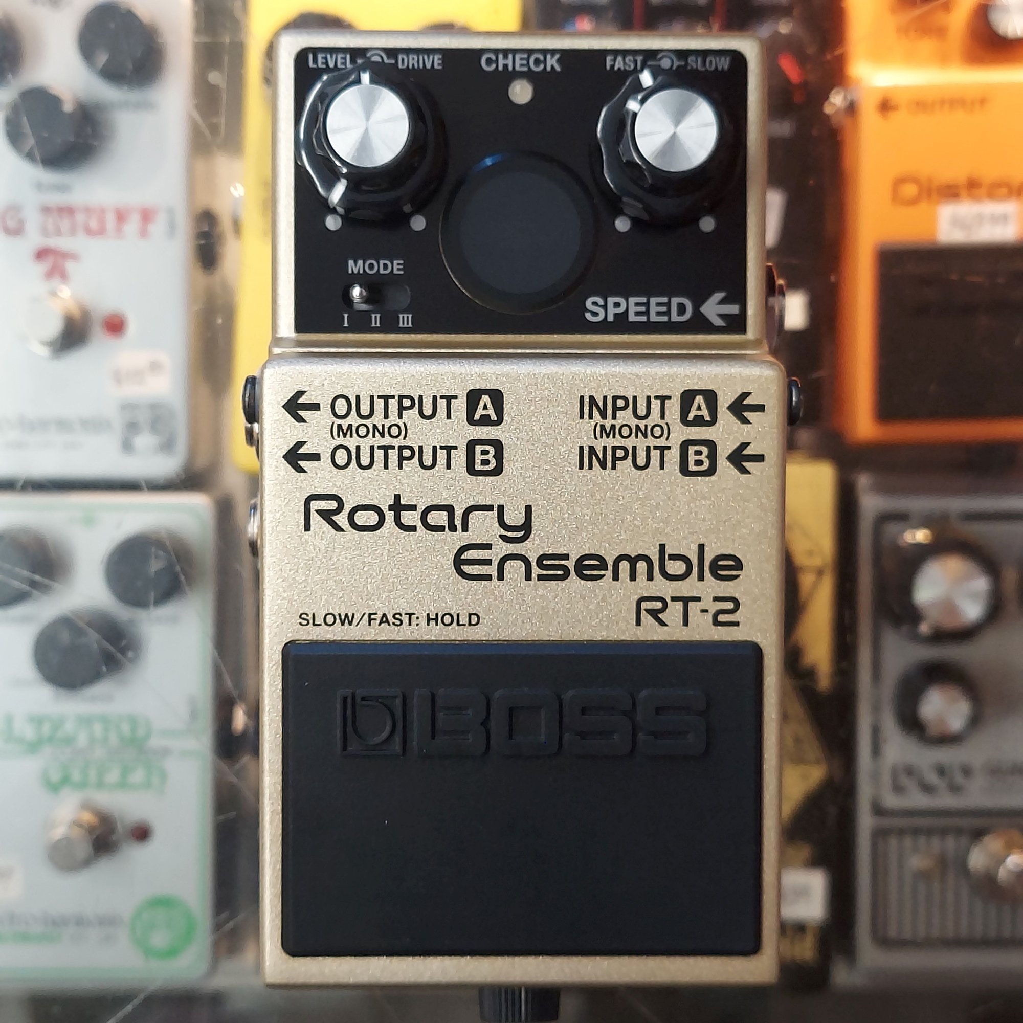 Rotary speaker cabinets sound amazing, but their size and weight make them impractical for anyone but the most dedicated vintage enthusiasts. Powered by the latest BOSS advancements, the RT-2 Rotary Ensemble distills this expressive spatial effect into a footprint that’s easy to integrate into every setup. This powerhouse pedal authentically recreates the complex sonic magic of its inspiration, supported by three sound modes, deep tonal shaping, and advanced operation with the onboard pedal switch and external control.