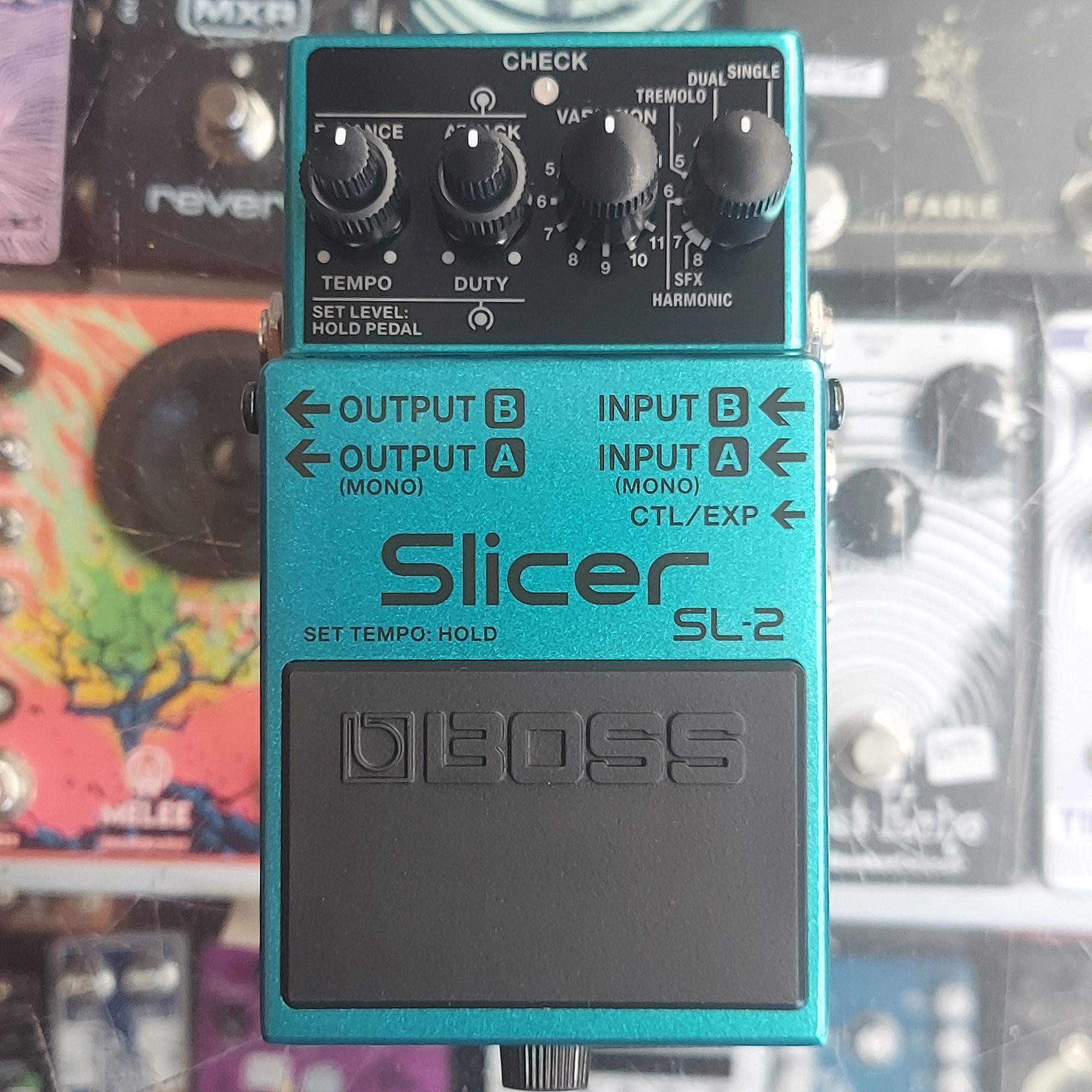 Here what they say about it: "Envelop your music in vibrant rhythmic energy with the SL-2 Slicer, an inspiring creative tool filled with colorful sonic grooves. This BOSS original chops your sound into unique percussive patterns—including many processed with internal filters and effects—and provides multiple output options that bring grooves to life across the stereo field.