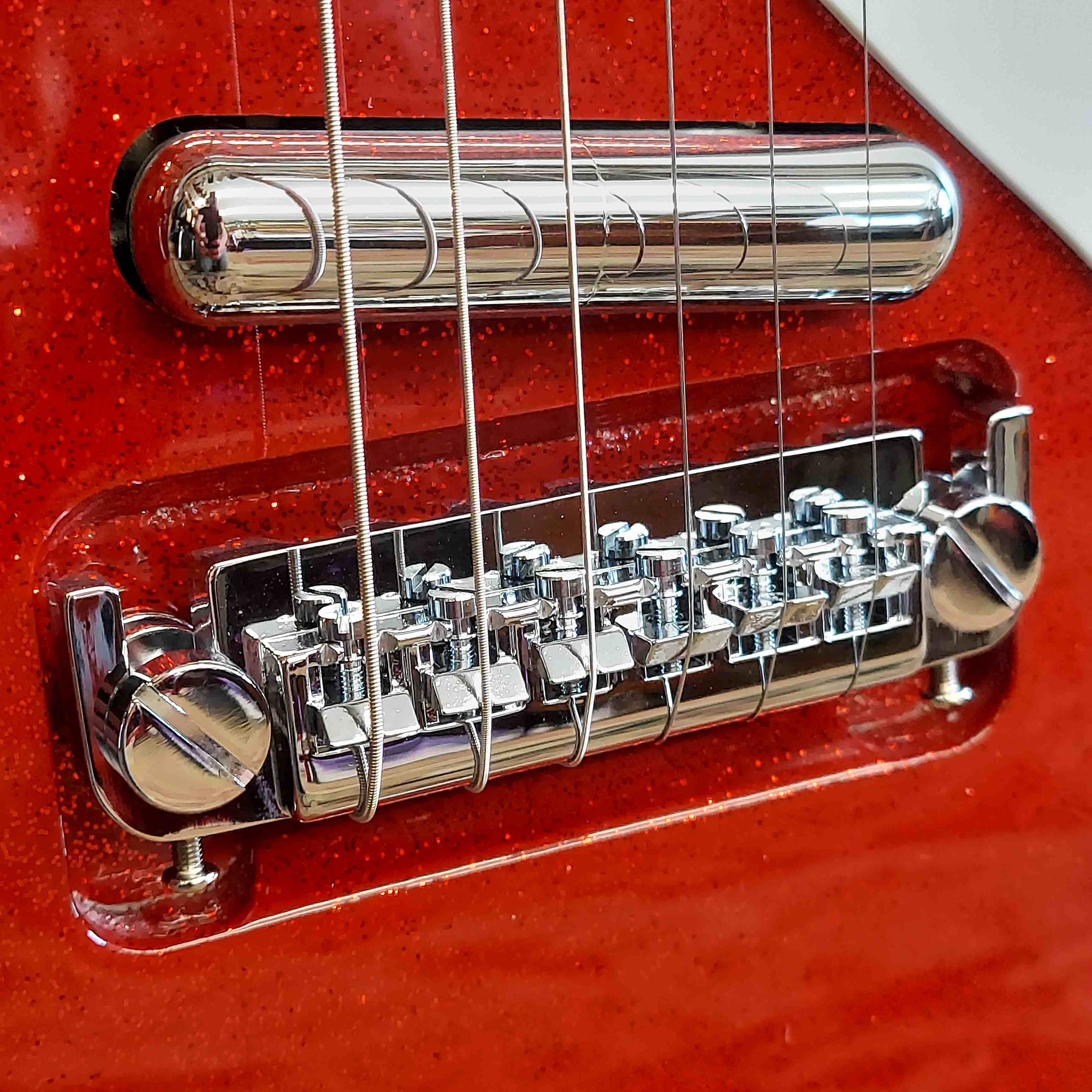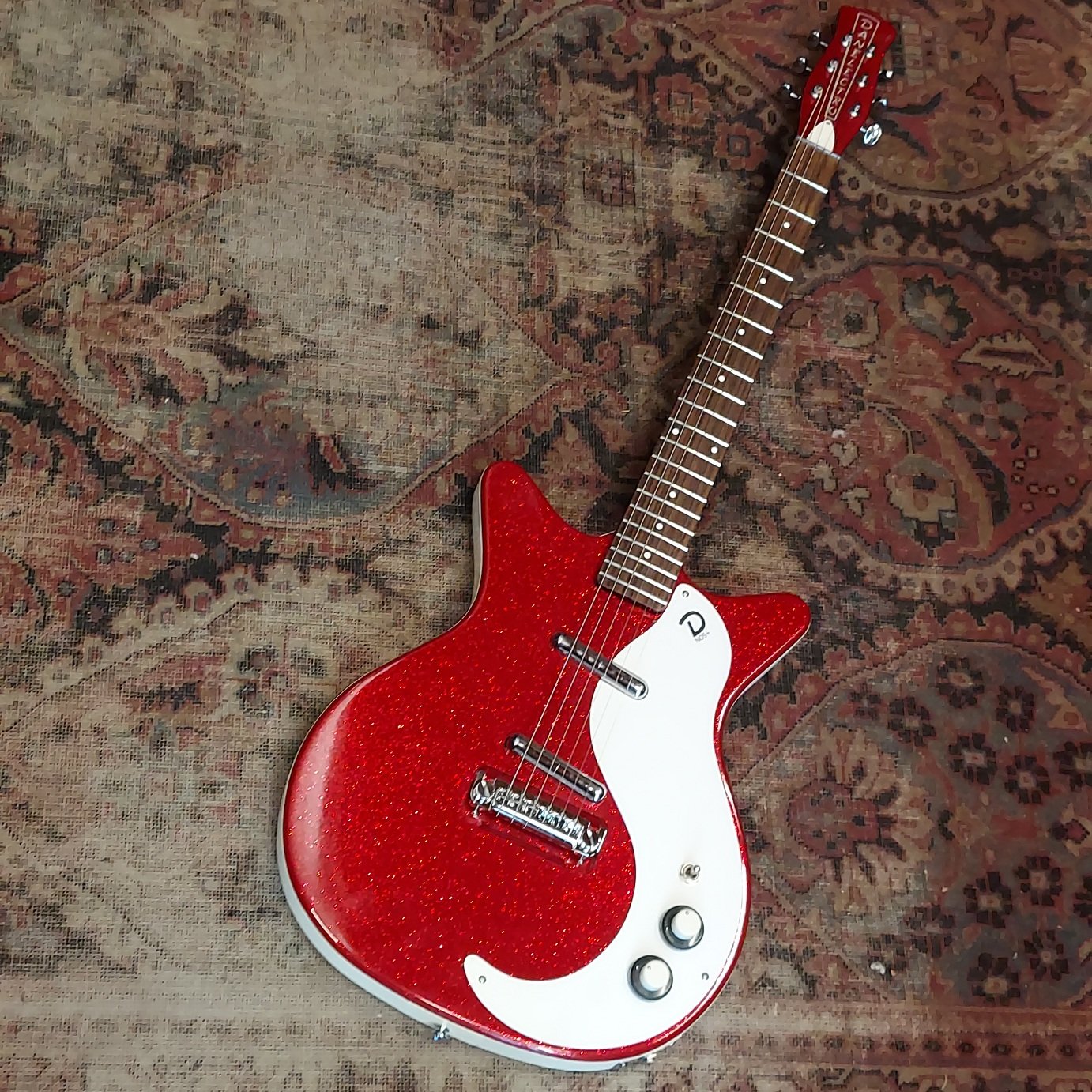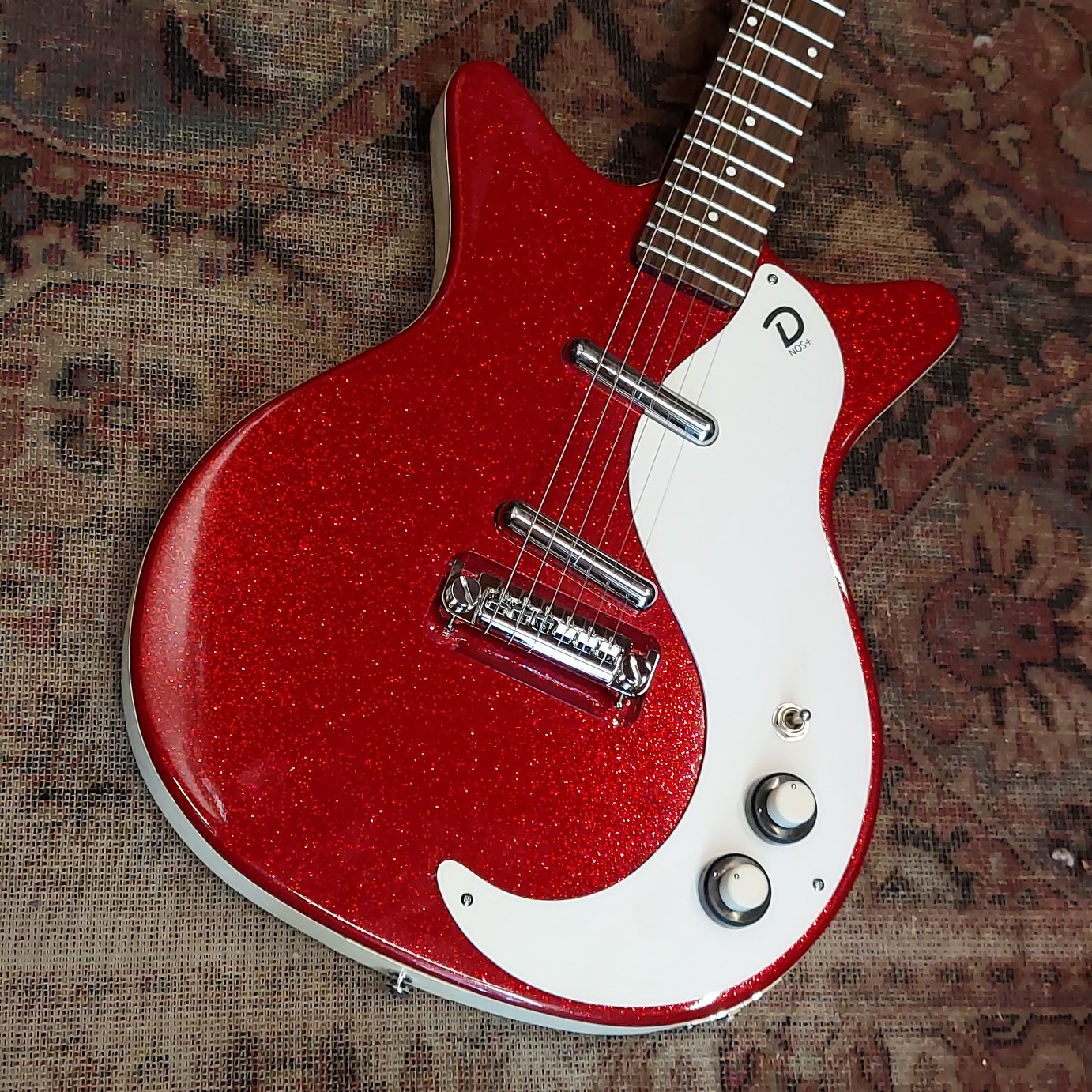 from Danelectro's website:" Danelectro®’s classic flagship model, spiffed up for its 60th anniversary. NOS+ pickups, adjustable die cast bridge, stacked tone and volume controls."