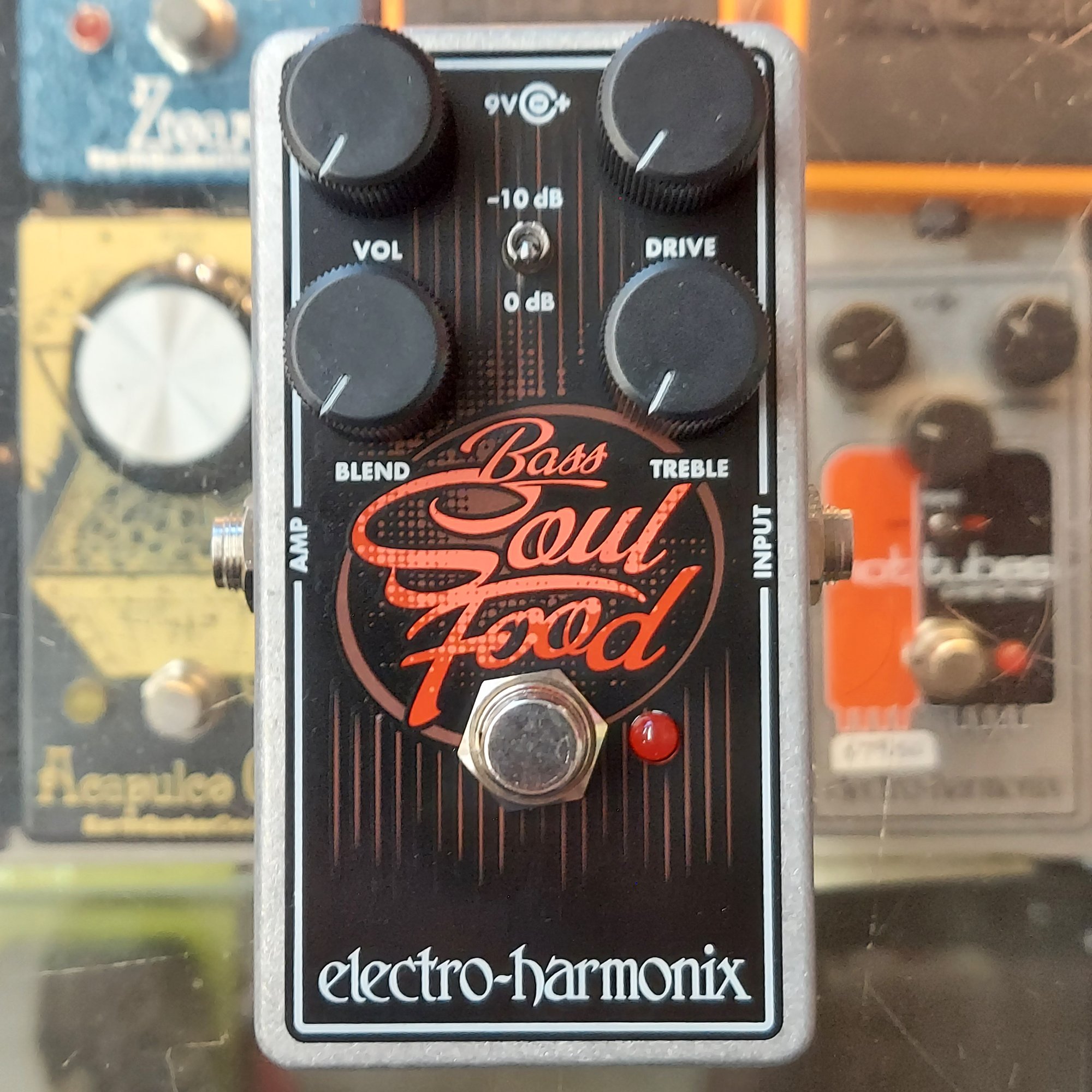 from the EHX website: "The EHX Bass Soul Food dives deeper than the original Soul Food, retaining even more low frequecies while adding warmth and growl to your original tone.