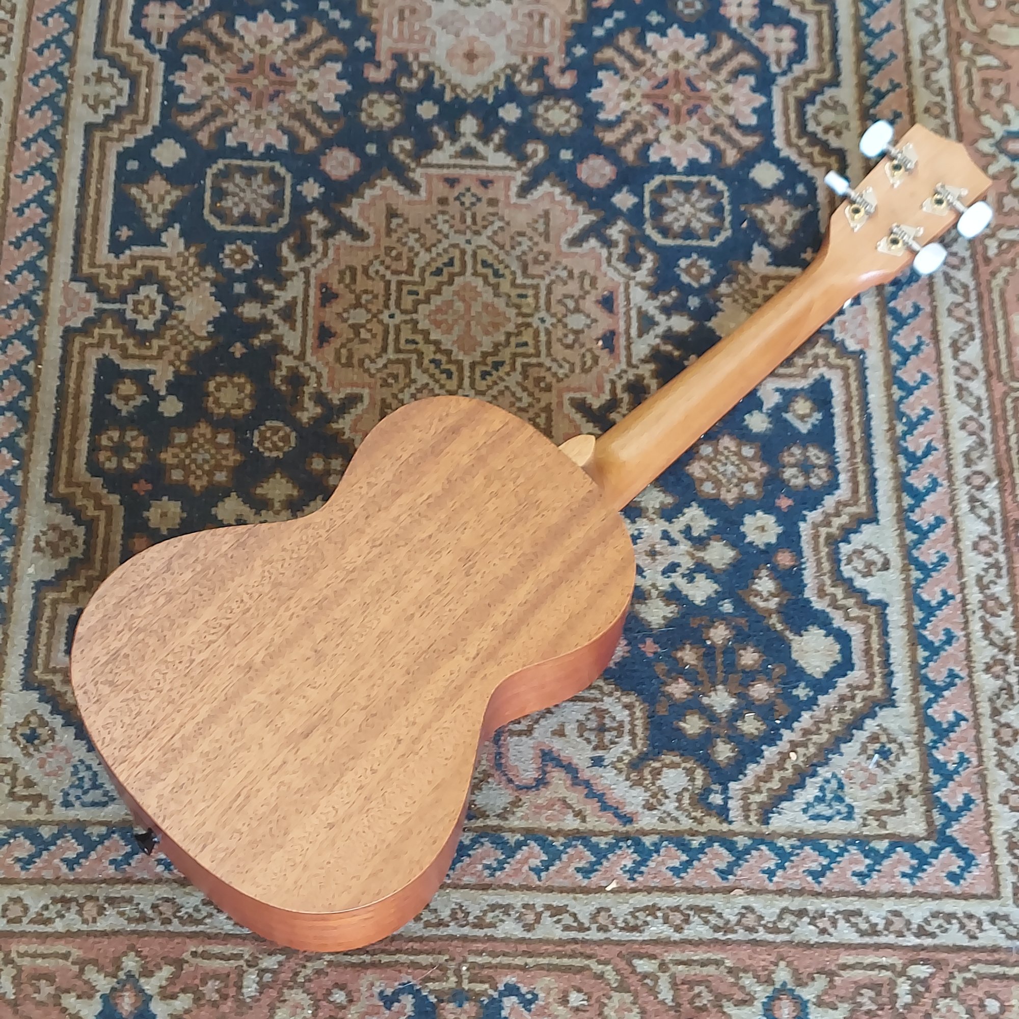 from Kala's website: "For 2024, Maōri cultural artist Sam Mangakahia created two unique new pieces of art for The Voyage Collection. The soft ivory color of this duo’s artwork stands out in contrast to their mahogany ukulele canvas. With the themes of ‘Resilient’ (Gardenia) and ‘Resourceful’ (Hibiscus), these two floral designs are the embodiment of enduring beauty."