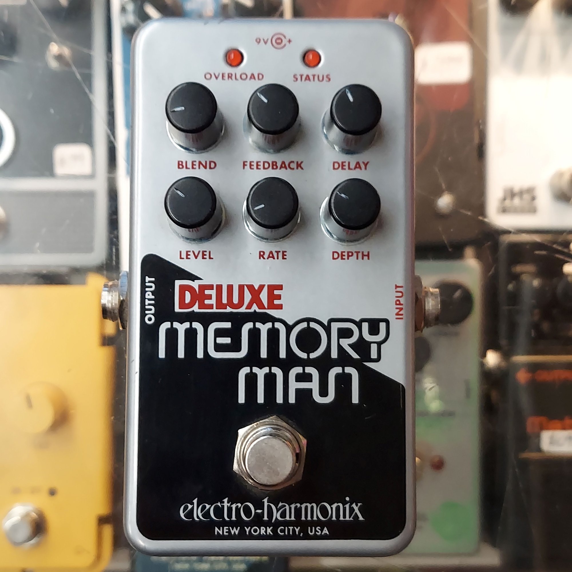 from the EHX website: "No one does analog delay and modulation like Electro-Harmonix and the Nano Deluxe Memory Man delivers the unmistakably lush delay, chorus and vibrato of the benchmark large-format Deluxe Memory Man in a compact, pedalboard ready chassis.