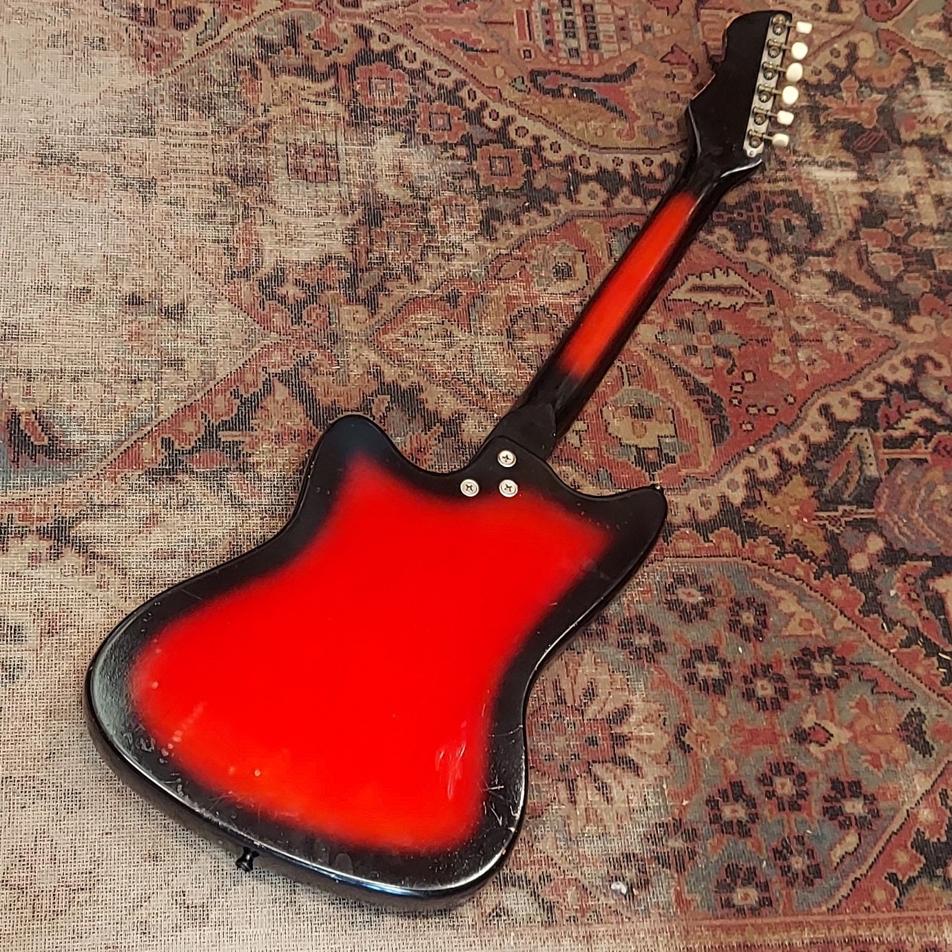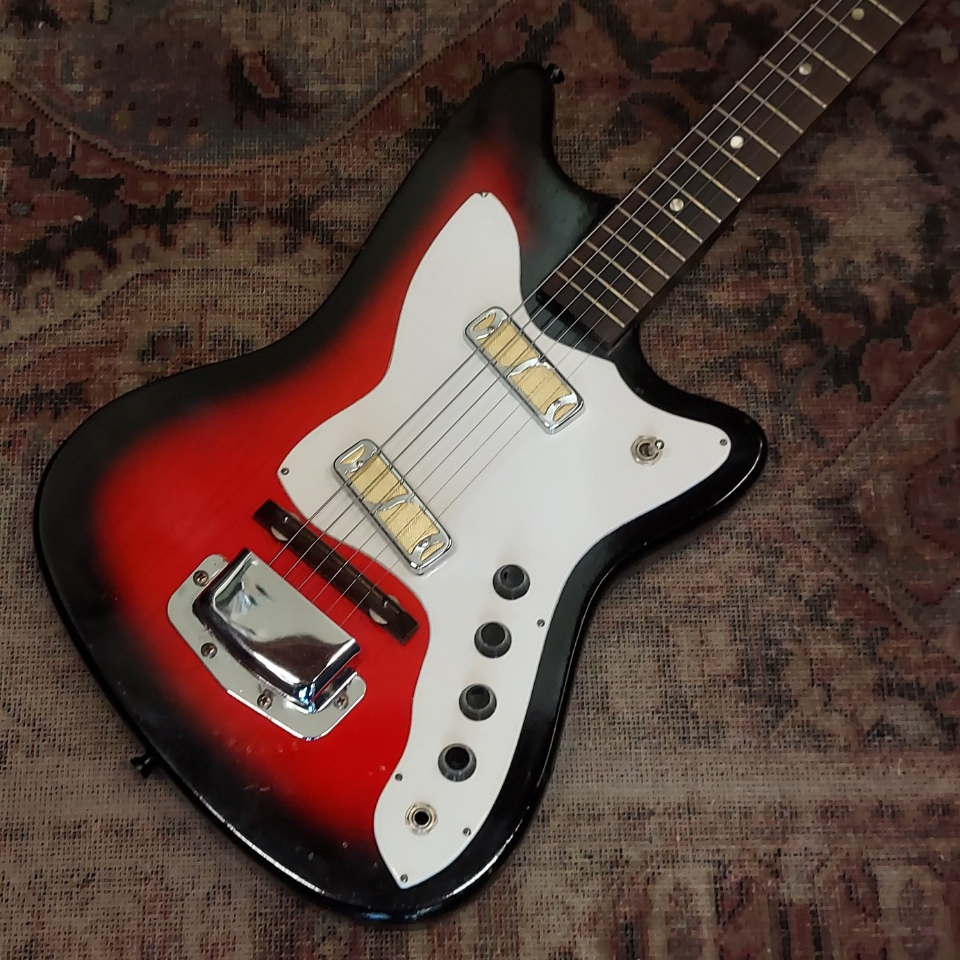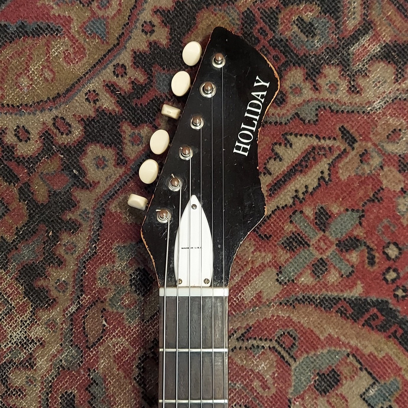 This super fun 60s electric guitar is branded Holiday but is from the Harmony factory in Chicago in the mid-sixties. The Holiday Silhouette & the Harmony Bobkat are identical guitars. Super fun!